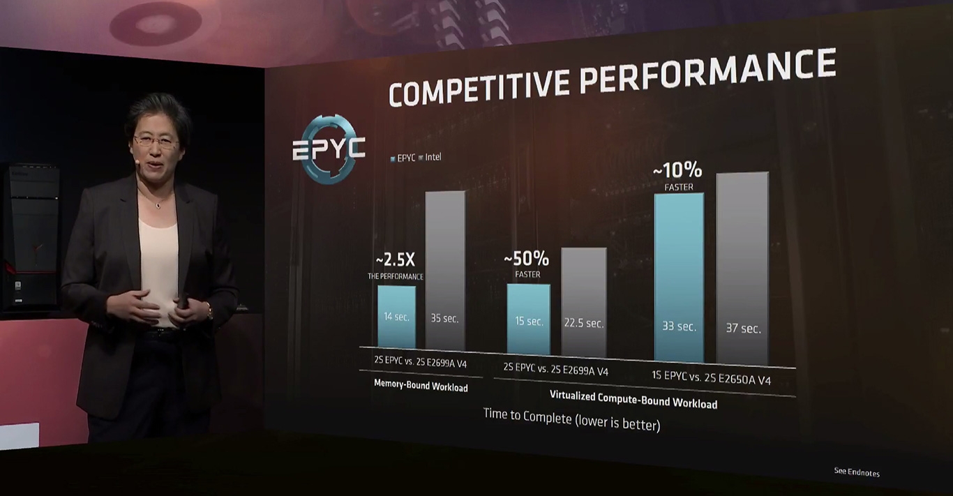 Cерверные модели CPU EPYC (бывшие Naples), скорее всего, выйдут раньше Ryzen Threadripper — произойдёт это, по словам Лизы Су, 20 июня. Дополнительно о них на пресс-конференции ничего не сообщили, поэтому нам придётся частично цитировать материал двухнедельной давности.