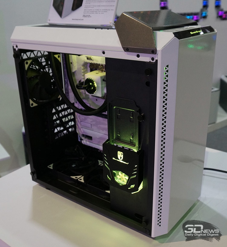 Новый корпус в семействе продуктов для энтузиастов Deepcool Gamer Storm вполне ожидаемо оказался весьма крупным (523 × 485 × 485 мм). Его верхние отсеки предназначены для установки 2,5/3,5-дюймовых накопителей и видеокарт, нижние — для блока питания и материнской платы. Кроме того, предусмотрено размещение радиаторов СЖО длиной до 360 мм. В зависимости от комплектации Quadstellar будет стоить от $300 до $350 (на рынке США).