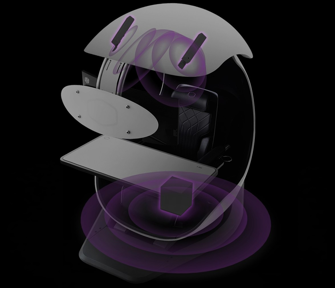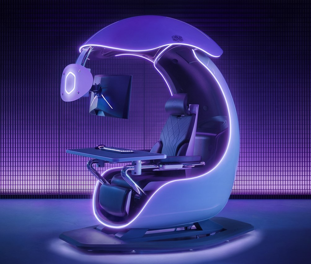 Компания Cooler Master представила рабочую капсулу ORB X с интерактивной подсветкой, необходимыми для установки мощного ПК системами ввода-вывода, встроенной акустической системой и возможностью оснащения одним 34" или тремя 27" мониторами.