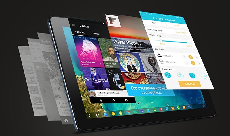 На планшет инсталлирована операционная система Remix OS на базе Android, позволяющая сформировать рабочее окружение в стиле Windows.