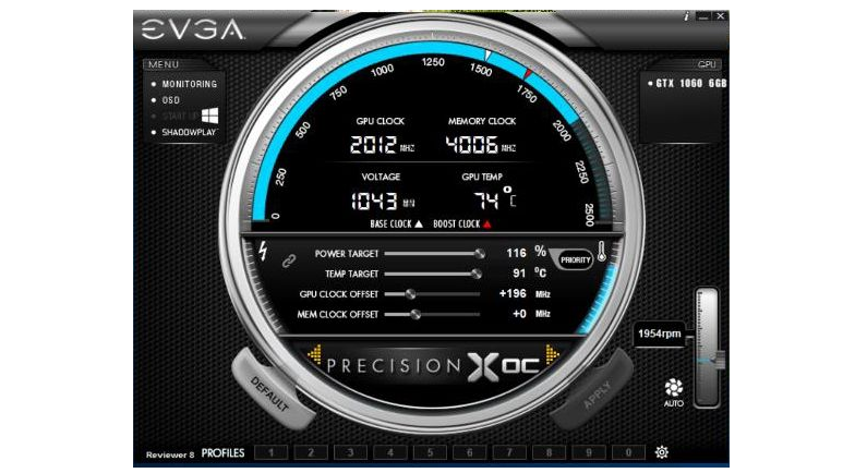 Попутно приводятся доказательства способности GeForce GTX 1060 разогнаться до 2 ГГц "по ядру". Обо всех подробностях эксперимента мы судить не можем, но если верить снимку экрана, то использовалась штатная система охлаждения, вентилятор которой в ходе эксперимента раскрутился до 2000 об/мин, удерживая температуру графического процессора на отметке 74 градуса Цельсия.
