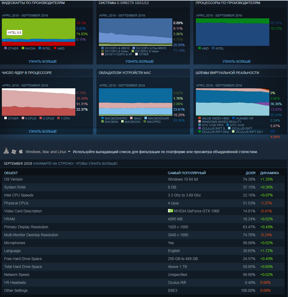 Valve представила данные о самых популярных решениях геймеров в системе ПК.