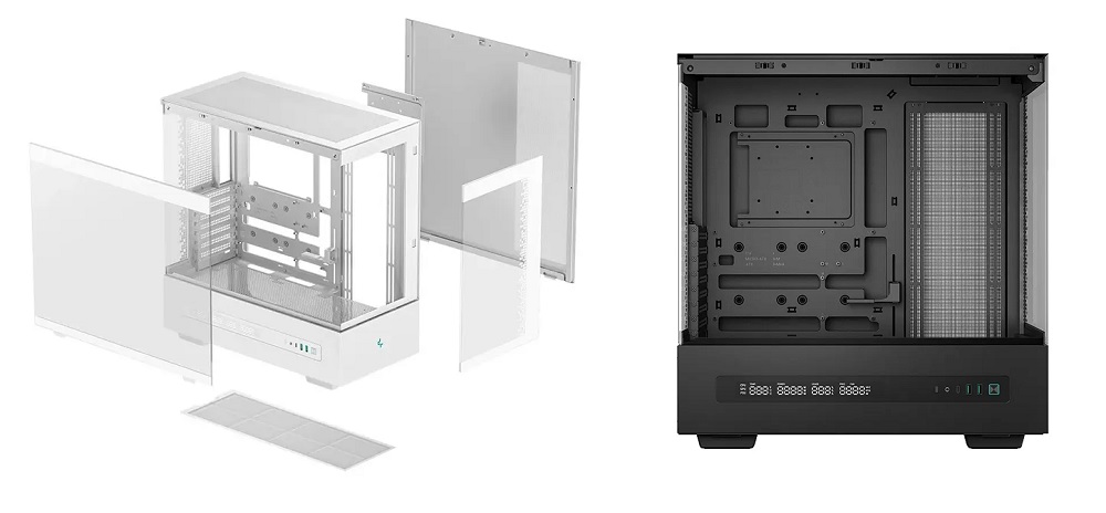 Новый корпус DeepCool совместим с материнскими платами mini-ITX, micro-ATX и ATX, включая модели со скрытыми разъемами (на задней стороне платы). Место для видеокарт вмещает варианты длиной до 450 мм, а в корпусе имеется небольшая опора для облегчения веса графического процессора при подключении. Высота процессорного кулера может достигать 182 мм, а блока питания — ATX PS2 — до 180 мм.