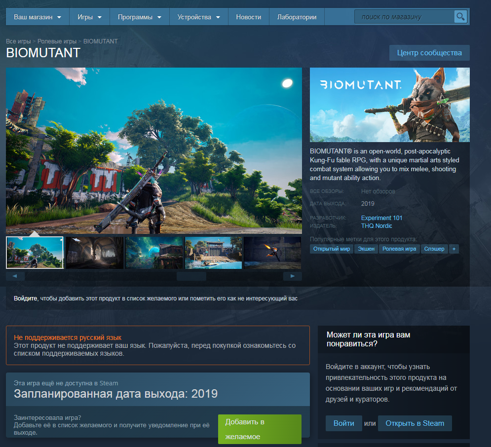 Kir Laurentis Разве? Видимо у нас разные стимы... https://store.steampowered.com/app/597820/BIOMUTANT/