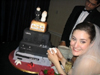 В самом низу торта расположилась next-gen приставка Xbox 360. Чуть выше на ней устроился старичок PS2, на котором разместился оригинальный Xbox. Заканчивает ряд платформ GameCube в специальном Zelda-издании. На олимпе геймерской конструкции разместились фигурки жениха и невесты.
