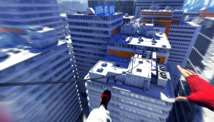 Mirror's Edge включала в себя необычный геймплей. Симулятор паркура? От первого лица?! При этом выглядит от первого лица просто потрясающе, будто ты действительно в теле Фэйт. Все движения такие натуральные, плавные. Графика и дизайн также бросались своей необычностью. Стерильный, яркий город будущего поражает до сих пор.