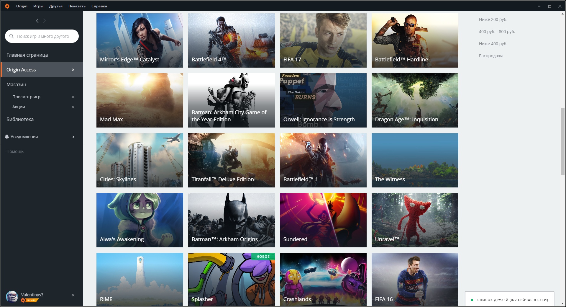 Valentinys3 Взял за 3к на год, все батлфилды, старворсы, фифы, даже батлфилд 5 бесплатно и раньше всех начну играть. Не думаю. что прям одни инди. Не говоря уже о серии МЕ, Dragon age, и так далее. Проще картинки загрузить, чем перечислять! Если ты до этого момента ни разу не играл в МЕ, БФ и т.д, то разумеется покупка оправдана. НО. МЕ - можно было получить нахаляву, купить по скидке в 85% или скачать с торрента. БФ - третью, четвертую часть и хард лайн - раздавали со всеми длс бесплатно, как в прочем и БФ 1. Если не успел, то даже сейчас, можно найти 3, 4 и ХЛ в различных магазинах от 300 руб (а кое где и того ниже). И опять же никто не отменял торренты (для сингла). Остальные сингл игры, вообще можно найти где угодно по сумасшедшим скидкам (кое где даже бесплатно). Я это к чему веду. Если уже играл во что то, то покупка Ориджин акцесс - не оправдывает себя. К примеру, провальный стар ворс меня не прельщает, футболом не увлекаюсь, а БФ собрал на халяву. Все остальное есть на торренте, ну и спрашивается зачем мне Ориджин акцесс? P.S. А покупать даже ориджин акцесс, ради игры в нфс - нужно быть или преданным фанатом игры или полным идиотом. Я к сожалению отношусь ко 2 типу, причем двойным идиотом, купившим и 2015 и пейбек. =( О чем теперь сильно сильно жалею...