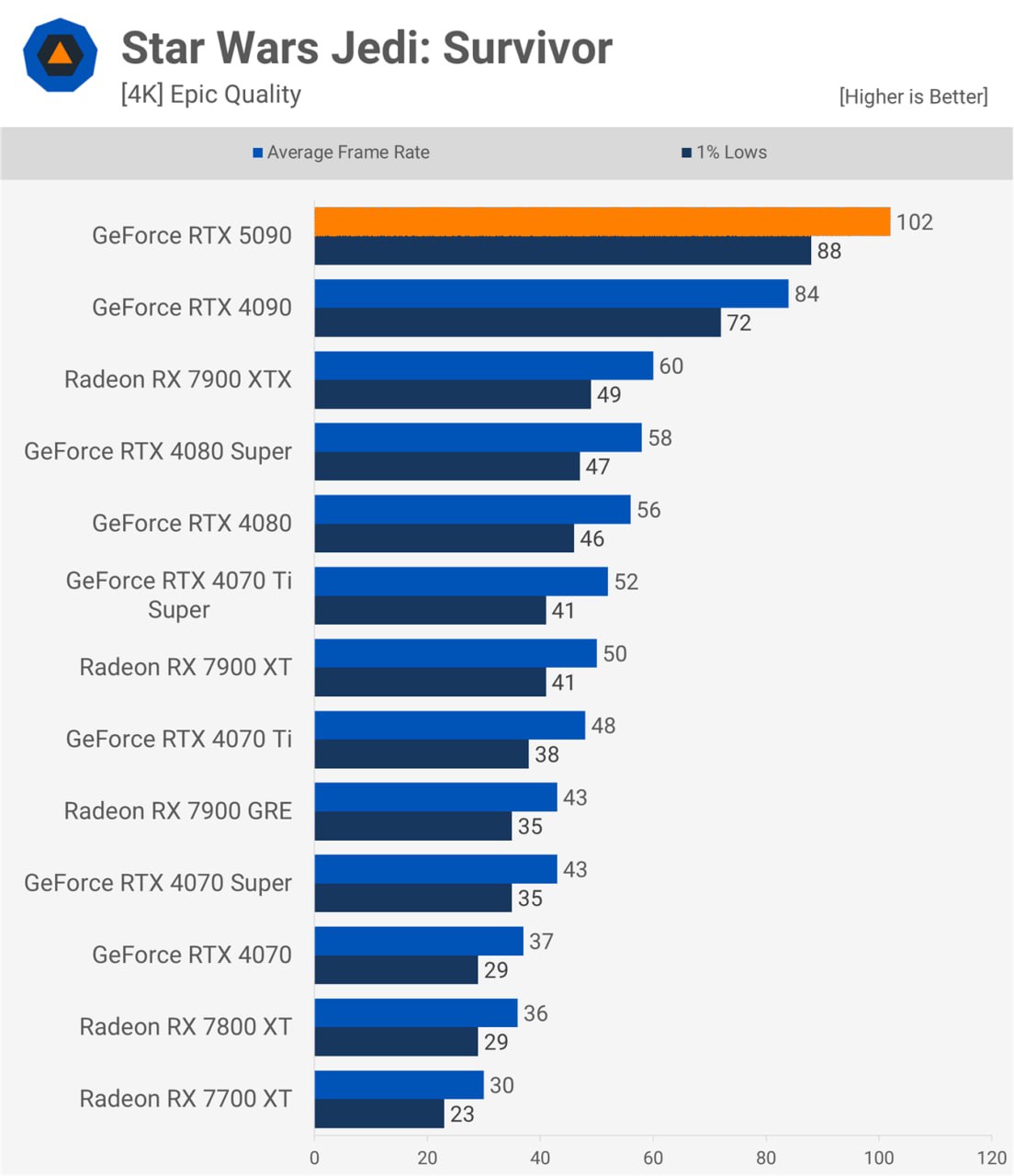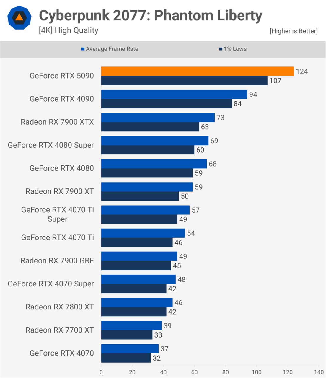 Чип протестировали в нескольких играх. Результаты показали, что разница между 5090 и 4090 не такая большая, чтобы переплачивать за новинку. Эксперты назвали видеокарту улучшенной и более мощной версией 4090 или 4090 Ti, но никаких заметных инноваций устройство предложить не может.