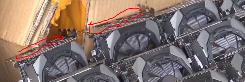 Как же, как же? Только исключительно для добычи криптовалюты? А это что? Как ни странно, выходы для подключения мониторов. И это можно заметить и на первой фотографии, 1 и 2 карта в верхнем ряду. Возможно сорвали поставки подделок для продажи с ALI или ebay, а наклеят логотипы в других местах, Все очень просто. Плохо, что не поймали самих контрабандистов. Карты для "КВ"
