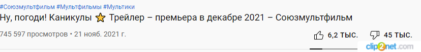 На ютубе специально отключили дизлайки, чтобы зрители не могли выразить своё негативное мнение о новой серии «Ну, погоди!»