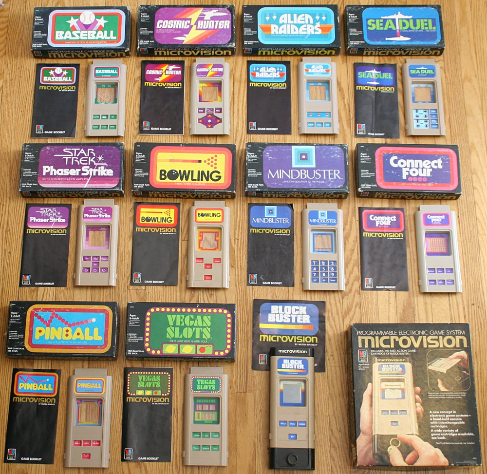 Первой в мире протативной игровой системой стала Microvision, она продалась тиражом более чем в 8млн. экземпляров. Вышедшая в 79-ом по цене в 51.99$ снискала определённый успех. Конструкция Microvision была уникальна, кнопки и процессор располагались на картридже, в консоли был только маленький монохромный экран, разрешением 16 на 16 пикселей и колесо ("штурвал") для управления. Но по понятным причинам производство таких картриджей было очень дорогое, по этому, да и не только, приставка продержалась на рынке всего 3 года.
