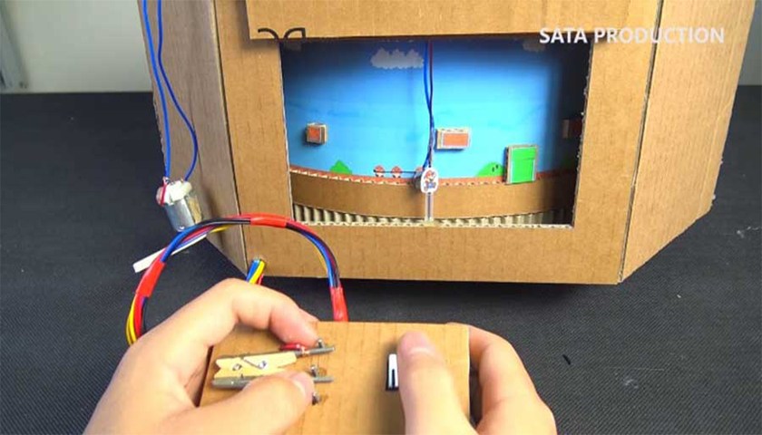 Парень собрал специальный вращающийся механизм, а также украсил его аутентичными декорациями из Super Mario Bros. Он соединил все элементы конструкции при помощи нехитрой системы проводов, смастерил полноценный геймпад из прищепки и нескольких контактов, и, в конце концов, получил полноценную работающую консоль!