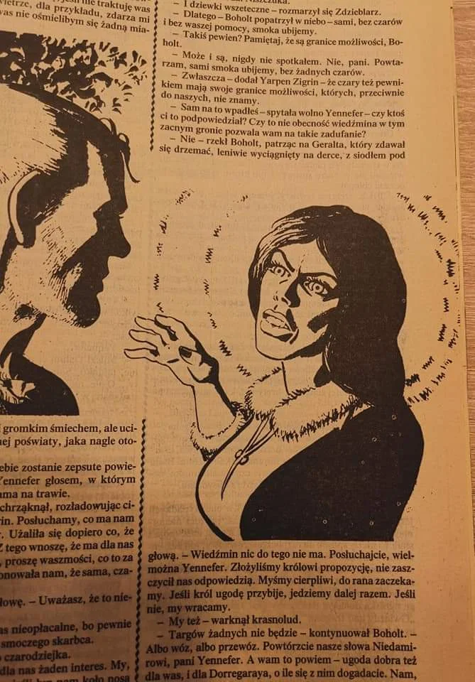 Пользователь под ником cheremhett опубликовал несколько снимков старого польского журнала "Fantastyka", где можно впервые разглядеть знаменитого ведьмака и колдунью. Персонажи появились в 51 выпуске журнала, который датируется декабрем 1986 года. Пользователи отмечают, что это был один из ранних рассказов Сапковского, который в журнале решили показать с небольшими зарисовками.