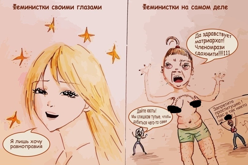 это да, раньше они просто хотели быть на ровне с мужчинами. а теперь феменизм это воздух который борется за воздух