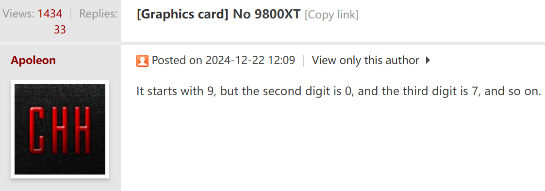Старший сотрудник Chiphell, Аполеон, заявил, что AMD будет использовать бренд Radeon RX 9000 для своих графических процессоров нового поколения. Удивительно, но в названии произойдут небольшие изменения. Вместо традиционного XX00 в новой схеме наименования будет использоваться X0X0. Таким образом, преемник Radeon RX 7700 XT или 7800 XT будет называться не 9700 XT или 9800 XT, а 9070 XT и 9080 XT (гипотеза).