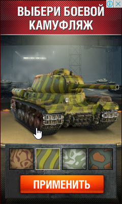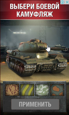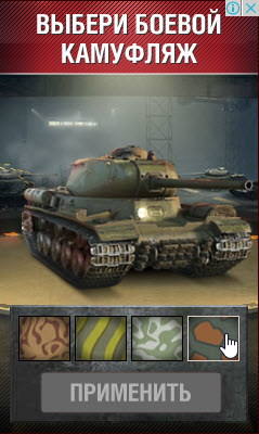 Здесь нужно выбрать камуфляж для своего железного питомца.