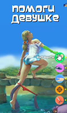 Традиционно первой мы будем рассматривать вариативную игру из серии где нужно чем-то помочь. Но в этот раз здесь аж целых пять вариантов возможного развития событий. Духовная наследница Елены Исинбаевой выпрыгивает из бассейна с тентаклями, попутно теряя свое нижнее белье, честь и достоинство. Что можно сделать?
