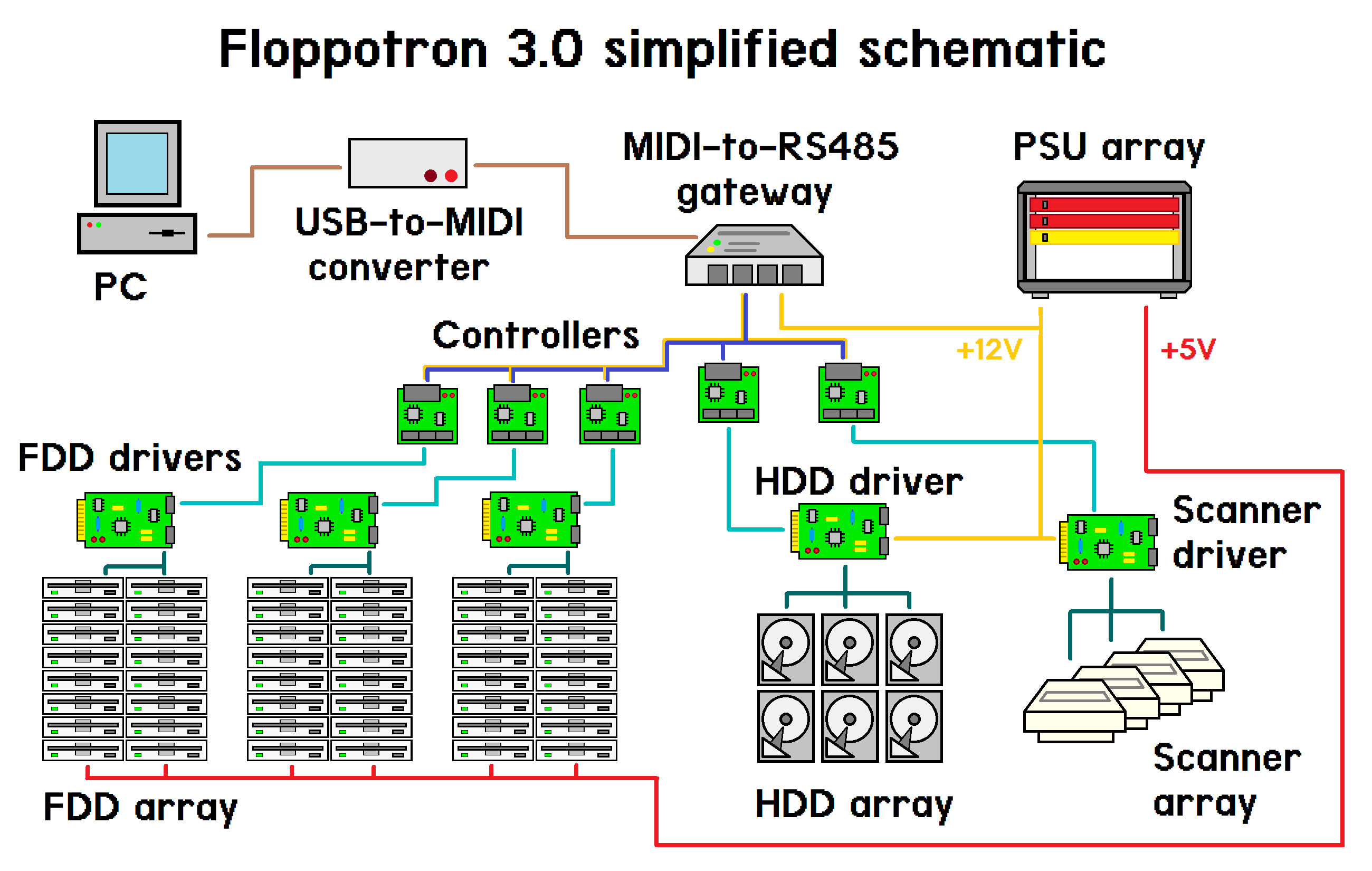Если вы застали компьютеры в 90-х годах, то наверняка помните свист коннекта модема или скрежет дисковода во время чтения данных. В 2011 году Павел Задрозняк решил показать, как можно использовать компьютерные компоненты в качестве музыкальных инструментов. Его оркестр из двух дисководов проиграл «Имперский марш» из вселенной Звездных войн. В 2016 году польский разработчик расширил набор музыкальных инструментов, добавив к дисководам различных форматов жесткие диски и сканеры.