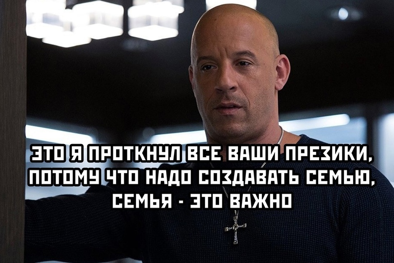 Вин Дизель зашел в душ и увидел там голую сестру принимающую душ. Она потребовала, чтобы он отвернулся и вышел. Но от семьи не отворачиваются