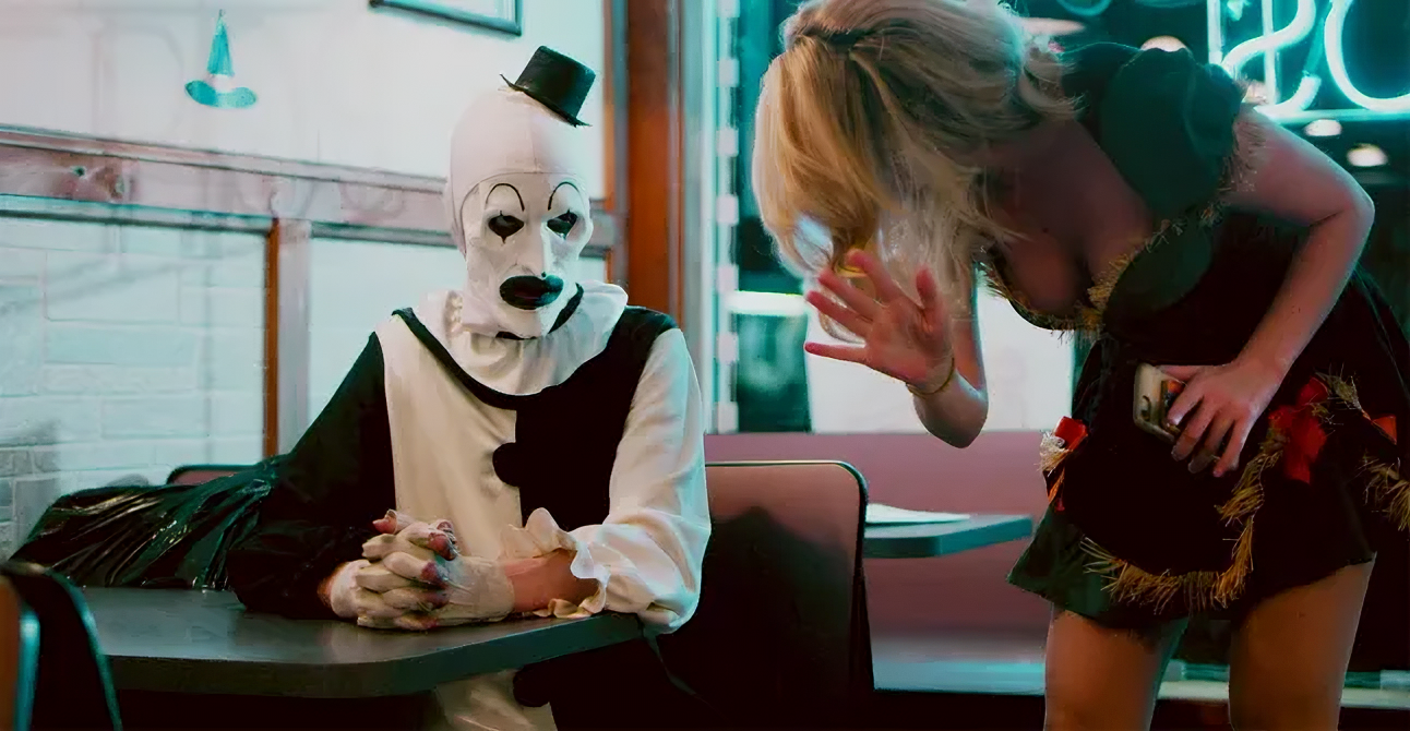 "Ужасающий" рассказывает историю Тары Хейс (Дженна Канелл), которая в ночь Хэллоуина стала навязчивой идеей убийцы-садиста, известного как клоун Арт. Премьера малобюджетного фильма ужасов состоялась в 2016 году на кинофестивале Telluride Horror Show и вскоре после этого стала культовой. Фильм получил смешанные отзывы: критики похвалили спецэффекты и образ злодея Дэвида Ховарда Торнтона, но им не понравились диалоги и отсутствие развития персонажей. На Rotten Tomatoes фильм имеет рейтинг 56%.