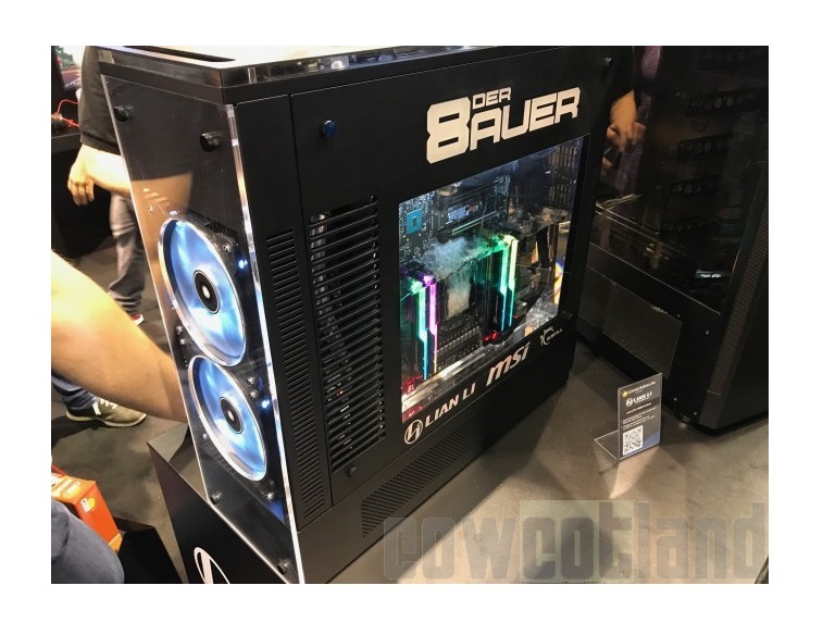 Псевдоним известного оверклокера и инженера Романа «Der8auer» Хартунга давно стал брендом, под которым выпускаются как отдельные компоненты ПК (вроде испарителей для жидкого азота), так и мощные игровые системы с впечатляющими ценниками. Компьютеры Der8auer традиционно реализует немецкий интернет-магазин Caseking.de, и, видимо, по его инициативе на выставке Gamescom 2017 в Кёльне демонстрируется система Der8auer Aqua Exhalare. Она примечательна не только своим внешним видом, но и использованием погружного охлаждения центрального и графического процессоров.