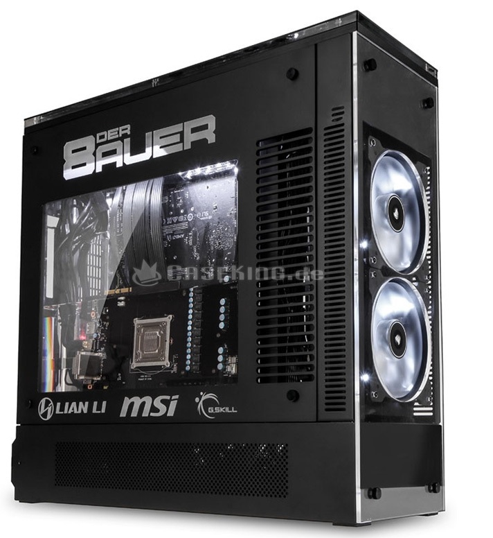 Система запитана от БП Seasonic Prime на 850 Вт, имеющего сертификат 80 PLUS Titanium. Использование мощного источника питания, в частности, обусловлено предпродажным разгоном компонентов Core i7-7800X и GeForce GTX 1080. В безопасности такой процедуры Der8auer и Caseking уверены, свидетельством чему является трёхлетняя гарантия. Последняя, к слову, включает бесплатную доставку ПК в сервисный центр для диагностики.