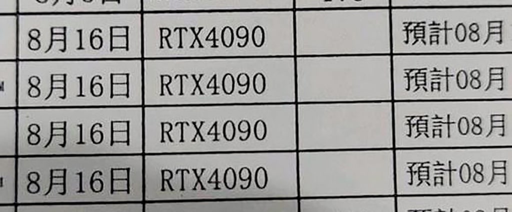 Для GeForce RTX 4090 было выделено 4 линии. Насколько это много, и как долго производственные линии были загружены – непонятно. Начало производства конкретно этой партии было запланировано на 16 августа, дату окончания целиком не видно, но это тоже август.