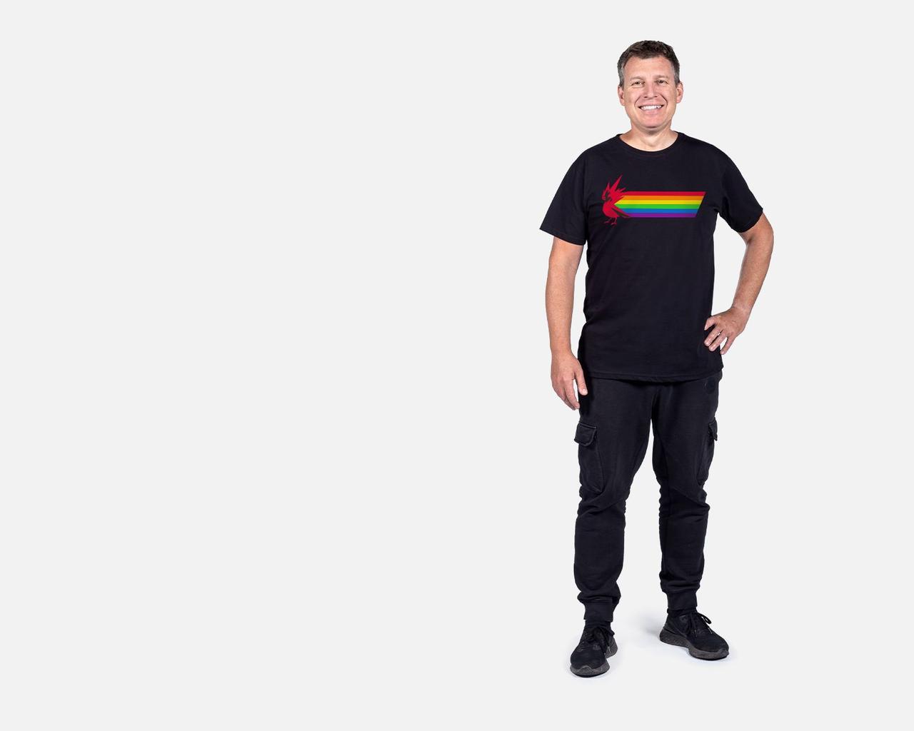 В официальном магазине компании CD Projekt Red появилась «радужная» футболка. На футболке изображён логотип компании и Радужный флаг – официальный символ сообщества ЛГБТК+. К вашим услугам разные размеры (от S до XXXL). Стоит такая футболка 15 евро.