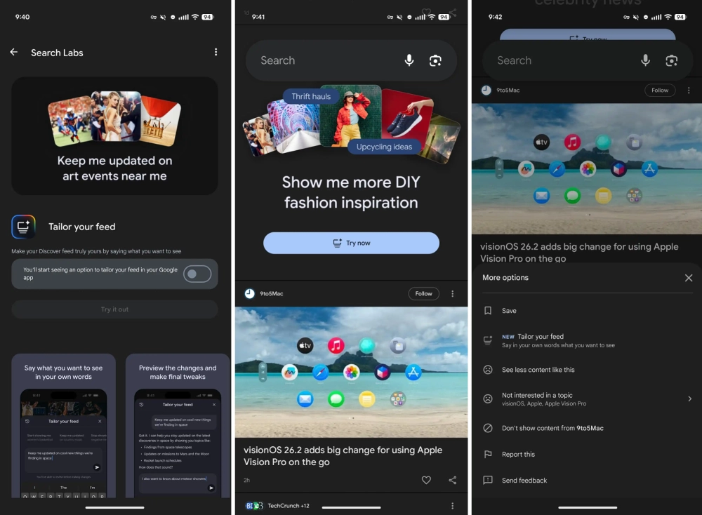 Нововведение позволяет вводить текстовые запросы, описывающие желаемый контент. Например, владелец устройства может попросить систему чаще демонстрировать новости о баскетболе или находить кулинарные рецепты без молочных продуктов. Помимо ввода собственных команд, приложение предлагает использовать готовые шаблоны, такие как не показывать политические новости, которые можно применить одним нажатием.