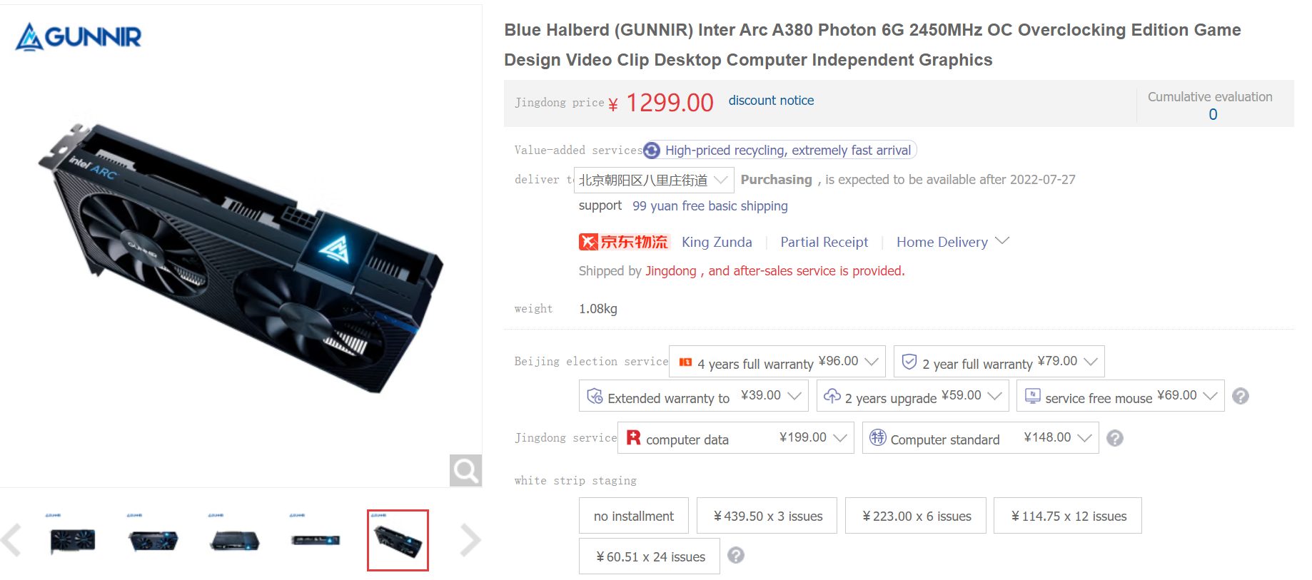 Первая видеокарта Intel Arc, Arc A380, теперь официально доступна в Китае по цене 1299 юаней, что составляет 192 доллара.