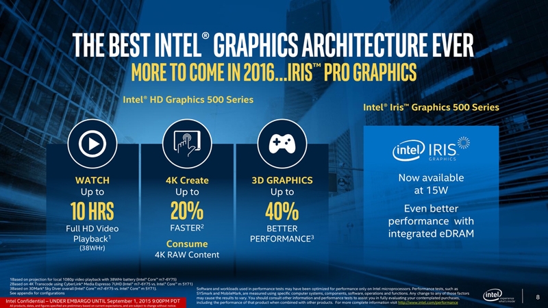 Корпорация Intel, помимо процессоров Skylake-S для настольных компьютеров, анонсировала в преддверии выставки IFA 2015 чипы Skylake для ноутбуков, ультрабуков, планшетов и гибридных мобильных устройств.