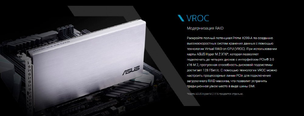 В 2017 году Intel вместе с релизом HEDT-процессоров представила функцию VROC (Virtual Raid on CPU). Кратко говоря, процессор берёт на себя задачи отдельных RAID-контроллеров, что снижает издержки, обеспечивает больший функционал, многое упрощает и т.д – хорошая функция. Для этого нужен специальный аппаратный ключ. Он стоит $100 за базовую версию и $250 за продвинутую. В потребительском сегменте VROC не прижился, но используется в серверах.