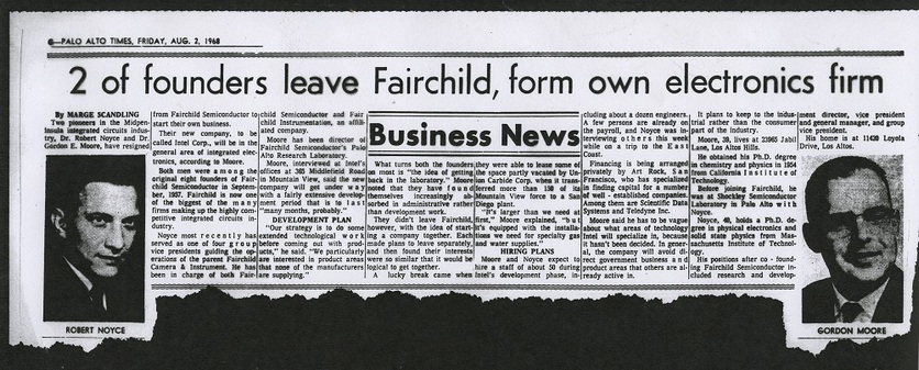 «Дела у Fairchild шли весьма неплохо, но бизнес постепенно снижал темпы. Компанией управляли из штаб-квартиры в Сиоссете, Нью-Йорк, вдали от производства. Боб Нойс был наиболее подходящей кандидатурой внутри компании для руководства на месте, но они по какой-то причине решили обойтись без его участия. Это его весьма расстроило, и однажды он спросил меня, не хочу ли я начать все с нуля. К тому моменту у меня была лучшая на мой взгляд работа в отрасли — я руководил научными исследованиями и разработками в Fairchild — и, по правде сказать, был не очень заинтересован в том, чтобы что-то менять», — вспоминает Гордон Мур.