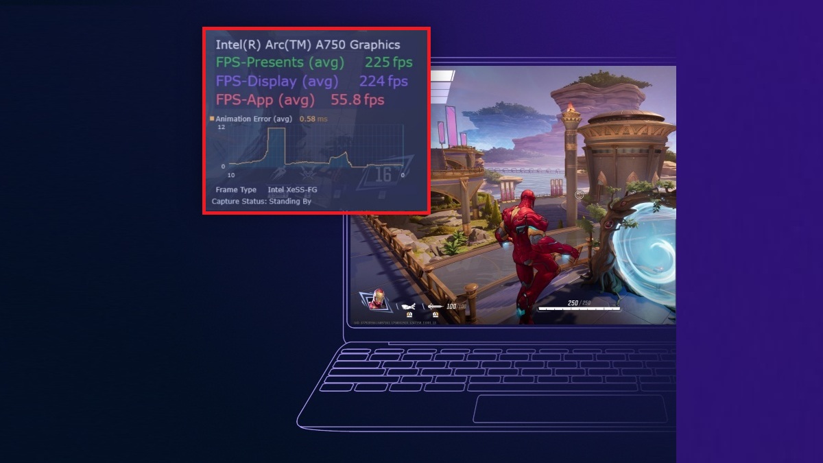 Intel обновила PresentMon, добавив функцию «Frame Type Differentiation». Это позволяет PresentMon различать «реальные» кадры и кадры, сгенерированные ИИ. Ниже показано, как он отображает метрику «FPS App» вместе с «FPS-Presents». Это означает, что PresentMon может измерять базовую частоту кадров игры вместе с её частотой кадров при включённой генерации кадров.