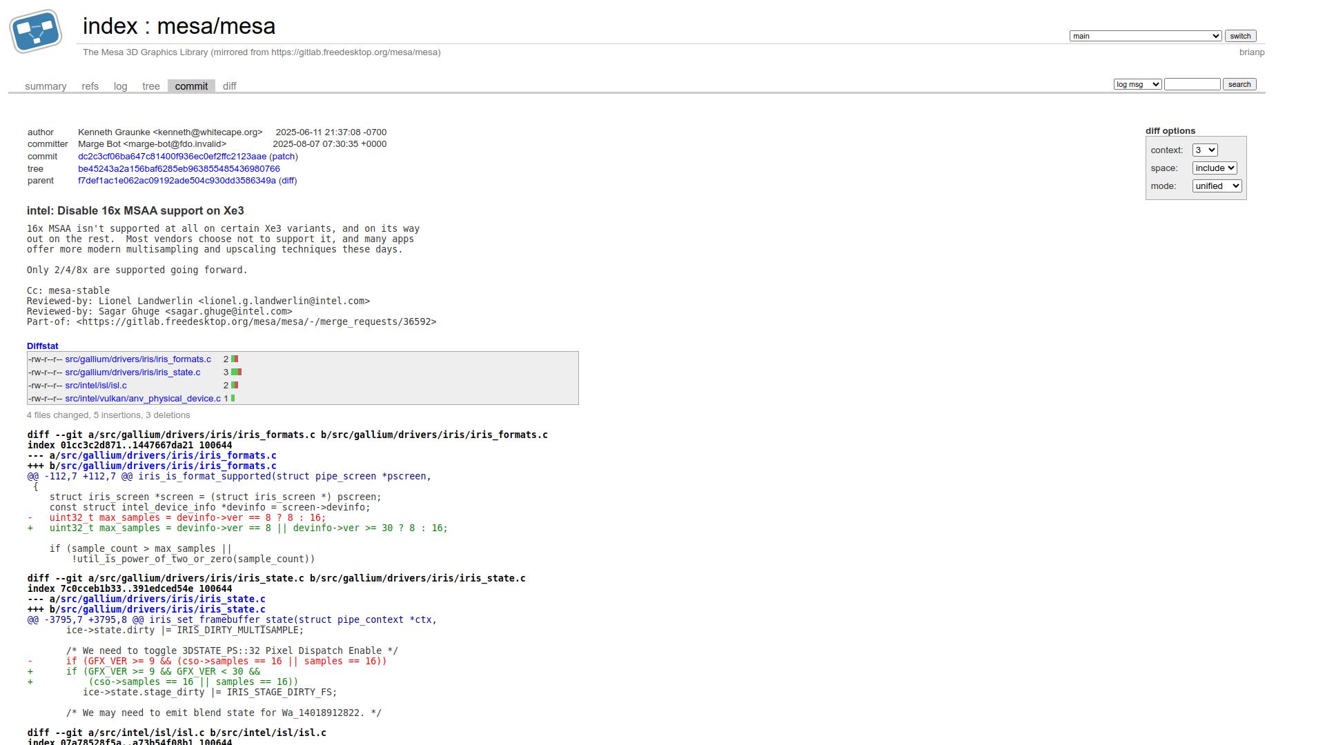 Отключение 16x MSAA уже реализовано в коде драйверов Mesa 25.3 для Iris Gallium3D и ANV Vulkan, а также будет перенесено в стабильные ветки Mesa 25.1 и 25.2. Ожидается, что графика Xe3 дебютирует в ближайшие месяцы вместе с процессорами Panther Lake.