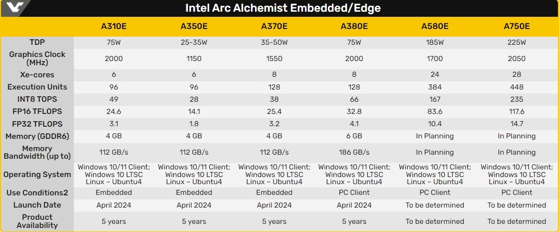 Intel продолжает расширять свой ассортимент видеоадаптеров Arc Alchemist, представляя шесть новых устройств, предназначенных для встраиваемых систем. Стоит отметить, что первые видеоадаптеры Intel Arc Alchemist были выпущены два года назад.
