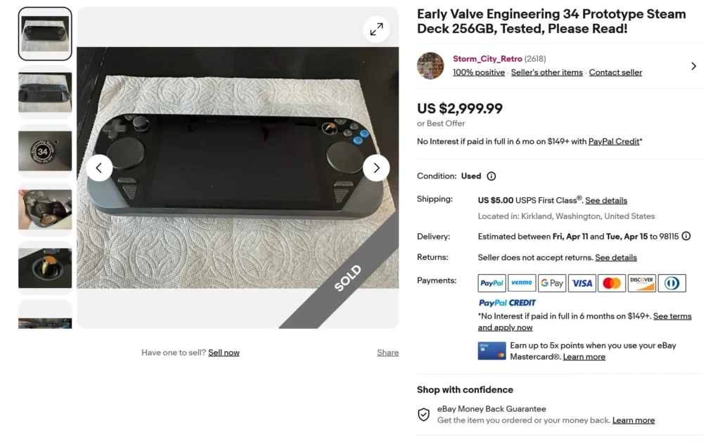 Прототип Steam Deck был продан на eBay за 2000 долларов. Устройство, обозначенное как инженерный образец 34, было создано во время разработки портативного устройства Valve. Оно выглядит как незавершённый продукт, который всё ещё дорабатывается.