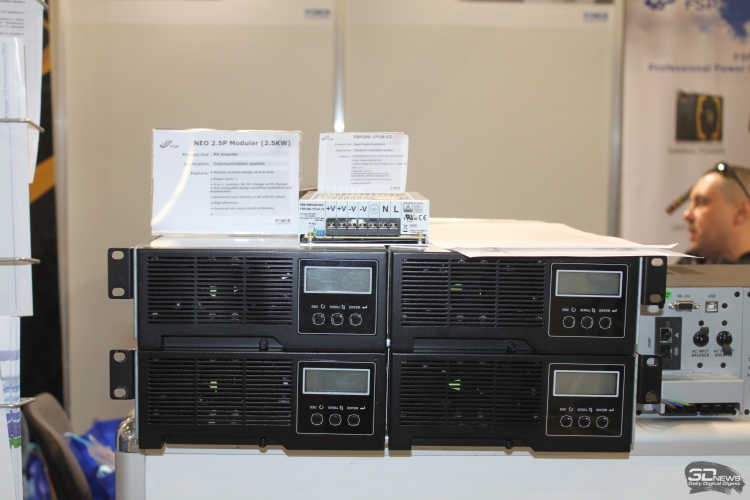 Для облегчения процессов конфигурации и мониторинга ИБП серии Mplus оснащаются 5,7” графическими ЖК дисплеями. Среди прочего компания показала в Москве источники питания серии Neo, предназначенные для использования в составе телекоммуникационных систем. Они представляют собой 48-вольтовые инверторы с гибкой конфигурацией Новинка имеет модульную конструкцию и позволяет из 2,5 кВт блоков собрать БП мощностью до 20 кВт.