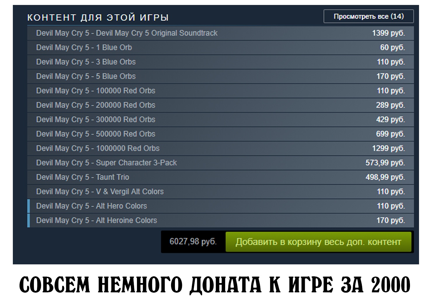 И на этом фоне лихорадкой микротранзакций начинают болеть и другие разработчики, которые ранее в этом не были замечены. Только недавно Capcom выпустила несколько платных дополнений для Devil May Cry 5. Что в них такого? Да, в общем то, ничего необычного. Просто за рубли вы можете купить сколько угодно сфер для прокачки, что нивелирует надобность в исследовании и без того скудных локаций и многое другое. К примеру, за 600 рублей вы можете купить себе уникальный модификатор, который в игре стоит 3 миллиона сфер. Разумно да? Конечно же, ведь самостоятельно его только идиот будет фармить. А ещё за 600 рублей вы можете приобрести усиленных протагонистов, которые открываются только после прохождения игры на сложности «ДМД». То есть, разработчик предлагает не играть в их продукт. Зачем? Можно ведь просто заплатить и получить всё и сразу.