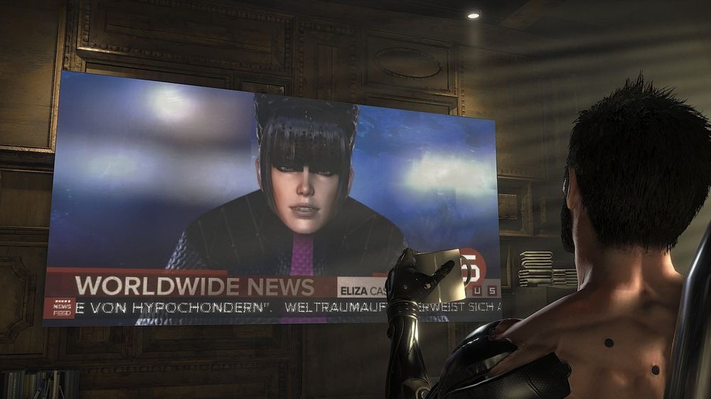Сценаристы Deus Ex Human Revolution действуют несколько иначе. Там все события находят отражение в масс-медиа. Телекомпания “Пик Ньюс”, которая является местным Первым каналом, постоянно транслирует новости, в которых рассказывает о последствиях действий Дженсена или других персонажей. Однако все эти сообщения тщательно отредактированы и приглажены, и служат больше для формирования общественного мнения, чем для реального освещения событий.