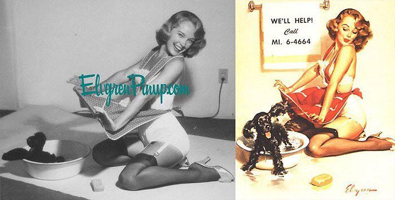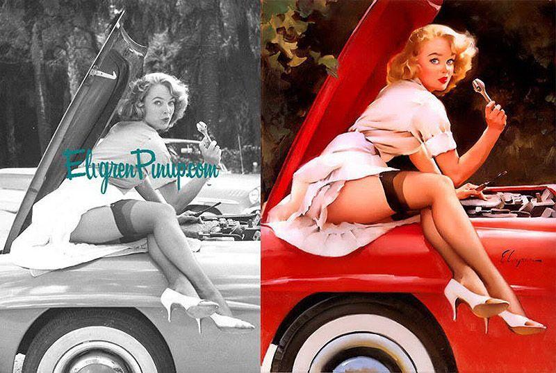 В направлении пин-ап Джил Элвгрен (Gil Elvgren) — культовый художник. Его прославили плакаты и календари 50-х годов ХХ века, на которых он запечатлел «девчонок по соседству», застигнутых врасплох в забавных и пикантных ситуациях.