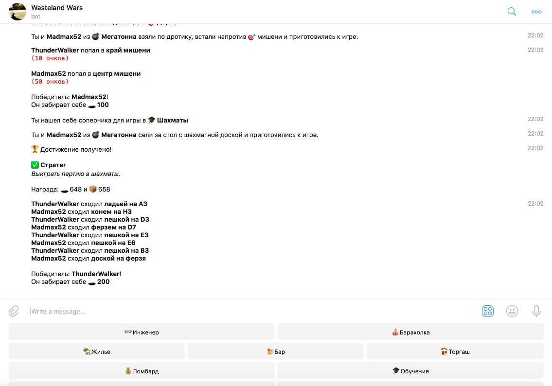 Так что для Wasteland Wars блокировка Telegram дала толчок к развитию, выходу зарубеж и переходу на новые платформы. Возможно, я чересчур забочусь и идеализирую проект. Однако мне не всё равно, во что играют люди и что они при этом чувствуют.