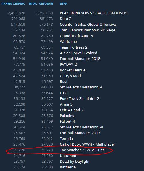 Третьей по популярности игрой стала Counter-Strike: Global Offensive, за которой последовали Tom Clancy’s Rainbow Six Siege и Team Fortress. Warframe заняла шестое место, а за ней расположились Rocket League и Grand Theft Auto V. Кроме того, в десятку наиболее популярных игр попали ARK: Survival Evolved and Football Manager 2018.