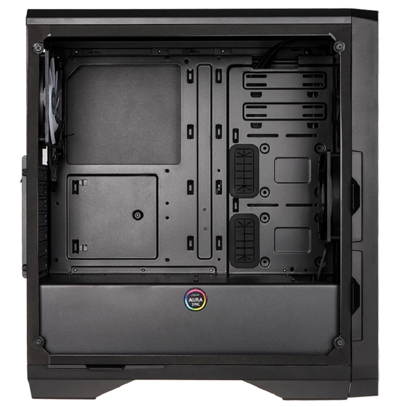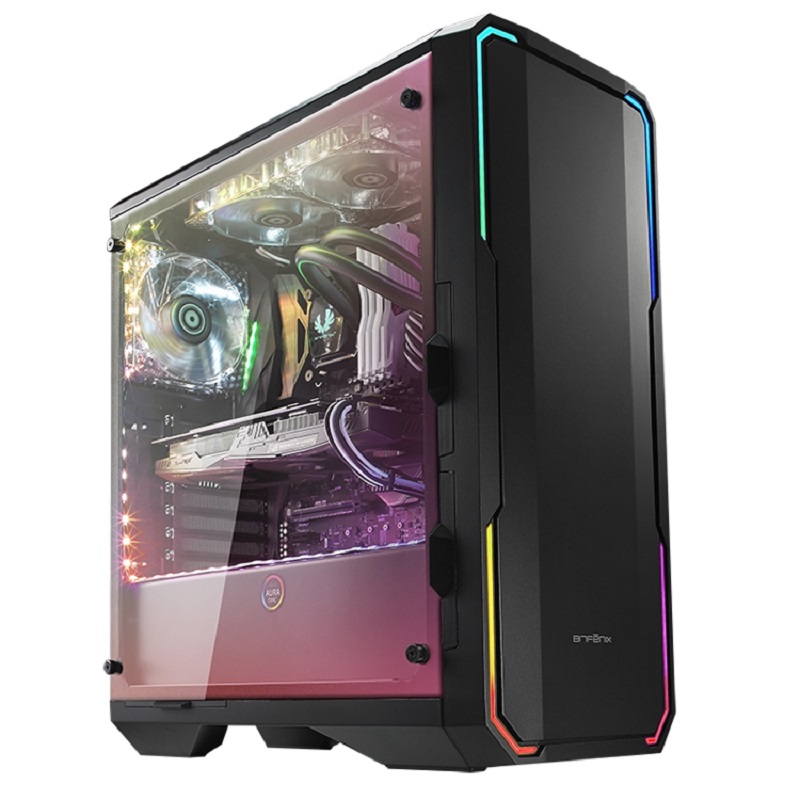 Одна из боковых стенок новинки выполнена из затемнённого закалённого стекла толщиной 4 мм. Фронтальная часть украшена многоцветной RGB-подсветкой, работа которой управляется силами встроенного контроллера.