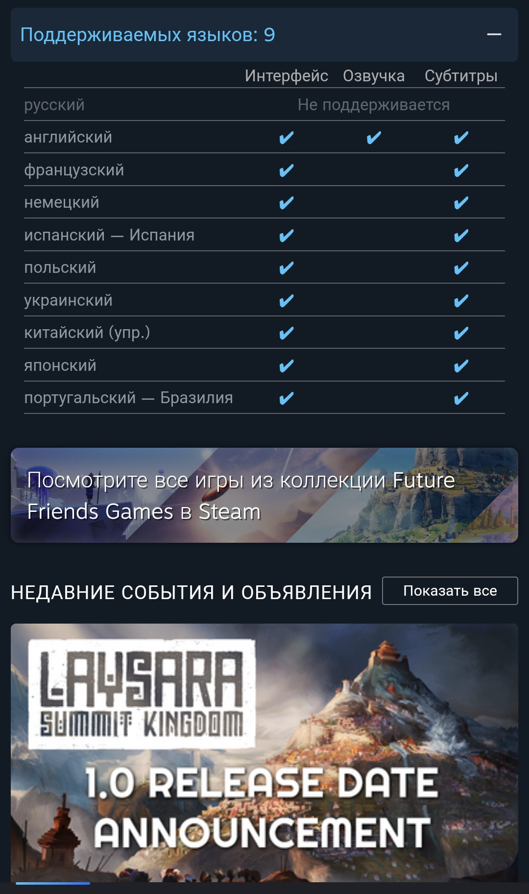 Градостроительная стратегия Laysara: Summit Kingdom готовится покинуть ранний доступ и выйти в полноценную версию 1.0 уже в феврале 2026 года. Релиз состоится на PC, а также на консолях Nintendo Switch, PlayStation 4 и 5, Xbox One и Series X|S.