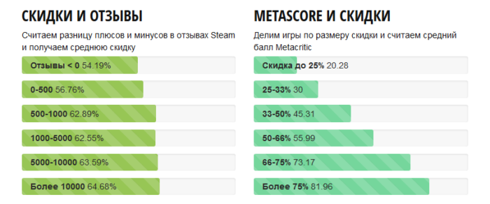 Как показывает статистика, игры с низкими оценками Metacritic либо не участвуют в распродаже, либо выставляют не самые большие скидки. Можно даже с натяжкой сказать, что, голосуя за желаемую игру, можно увеличить размер ее скидки на ближайшей распродаже.