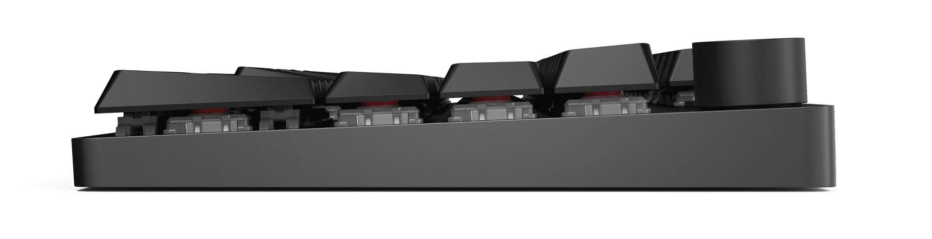 В качестве переключателей используются низкопрофильные Cherry MX Low Profile Red. Линейные переключатели срабатывают с усилием 45 г, ход до точки срабатывания составляет 1,2 мм, до стопа – 3,2 мм. Переключатели заявлены на 100 млн. нажатий. Клавиатура поддерживает полный NKRO, то есть одновременно можно нажимать сколько угодно клавиш. Данную функцию можно включать и выключать нажатием Fn вместе с Play/Pause.