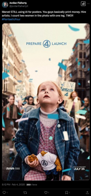 Наиболее подозрительной деталью пользователям показались пальцы — ошибка, которую часто совершает генеративный ИИ. Однако в разговоре с IndieWire представитель Marvel заявил, что «ИИ не использовался при создании постеров». Однако в студии не стали объяснять, как получились эти ошибки. Постеры по-прежнему размещены в соцсетях.