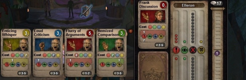 Дипломатия в Vanguard реализована не идеально, но вложенная в эту мини-игру идея просто прекрасна. Суть в том, что ваш герой должен общаться с различными неигровыми персонажами, добиваться влияния и пробиваться к верхушке общества. Сам процесс переговоров напоминает настольные карточные игры, но вместо карт в вашем распоряжении различные действия и эмоции. Их можно использовать по несколько раз за переговоры, а по мере прокачки будут появляться новые варианты.