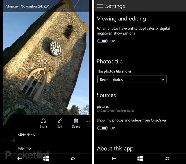 Работа над Windows 10 для ПК и мобильных устройств продолжается, так что многие функции, уже доступные на предварительных сборках этих платформ, ещё будут претерпевать изменения перед выходом финальных версий ОС. В настоящее время Windows 10 Technical Preview для ПК не может похвастать эффектами прозрачности, хотя в версии ОС для смартфонов на домашнем экране появилась возможность установки полупрозрачных обоев на фон (также эффекты прозрачности используются в других элементах интерфейса).